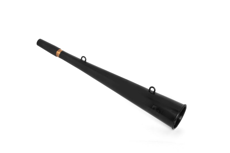 This horn is loud! Over 122 decibels of sound! Conforms to International Maritime Regulations. Ideal emergency fog horn for small craft on construction sites, for field sports, on air fields. Used for sound searching for lost individuals in forests and mountains S.O.L.A.S. Approved. Over 14" long. Black plastic with brass reed.