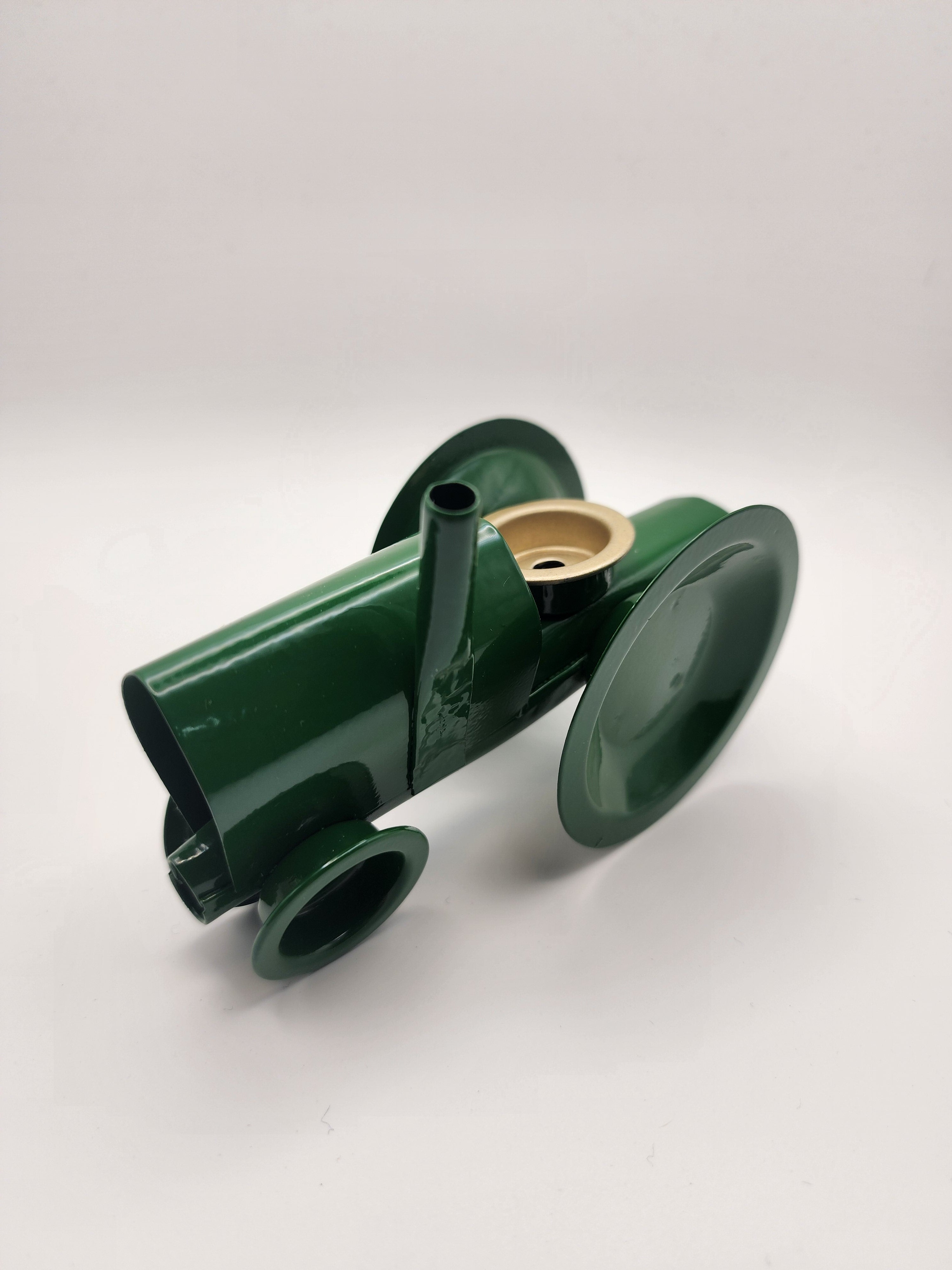 This all metal Tractor shaped kazoo is manufactured by The Kazoo Company in Eden, NY. It is a classic design built from a standard metal kazoo and other kazoo parts. High-gloss red enamel paint has this kazoo shining. Packaged in a durable white cardboard gift box.