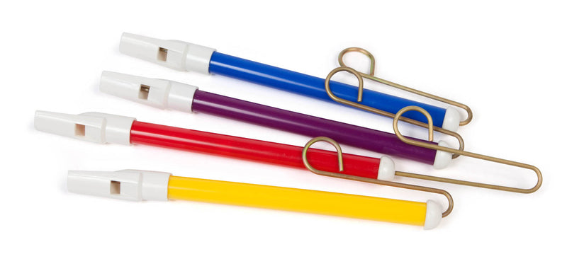 A great sounding plastic slide whistle at a great price. It is well built with a metal slide and solid plastic barrel and mouthpiece. Each slide whistle is packaged on a shrink-wrapped card. They come in a variety of colors.