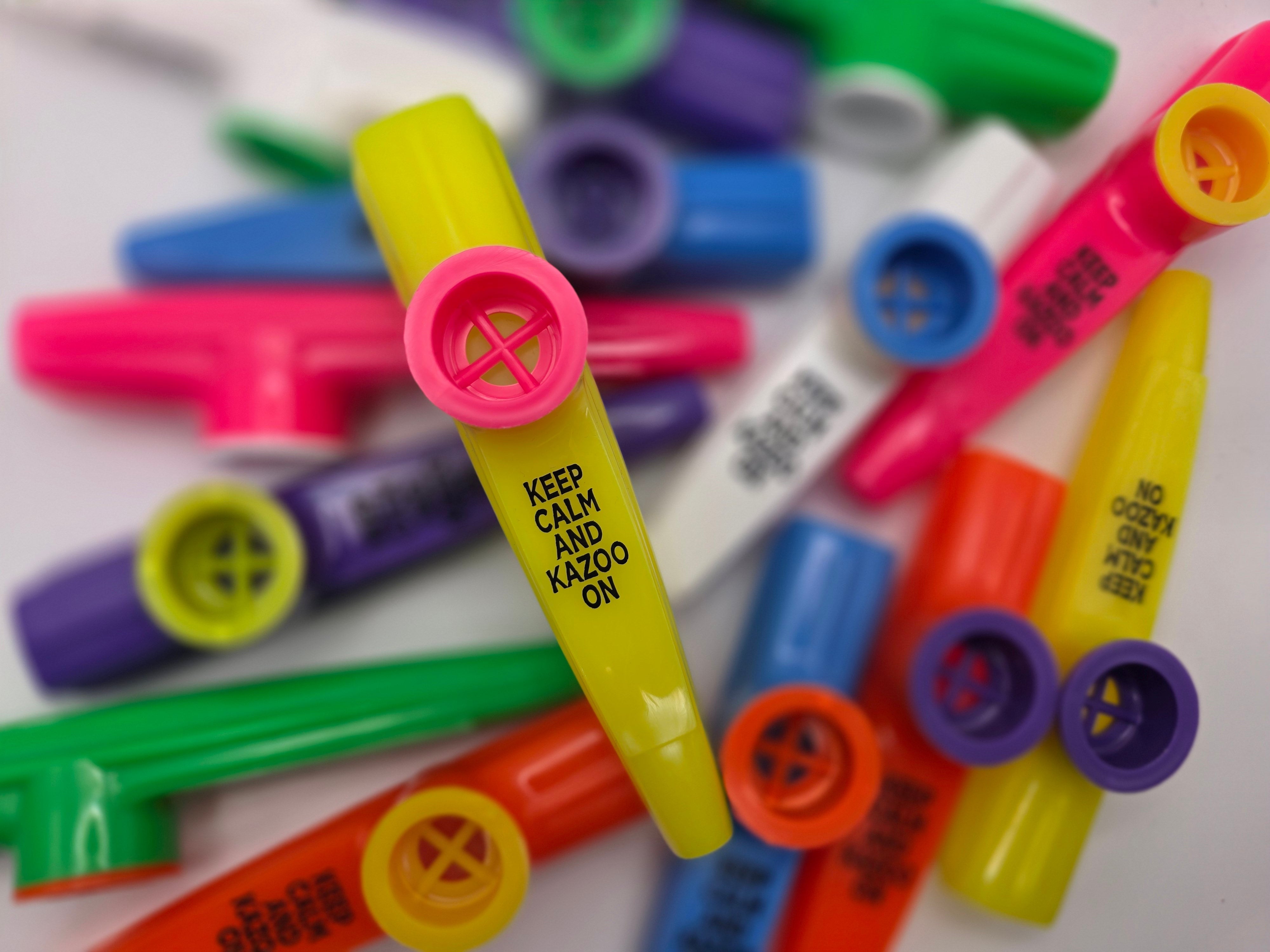 This is our high-quality plastic kazoo imprinted with the message, "KEEP CALM AND KAZOO ON"!